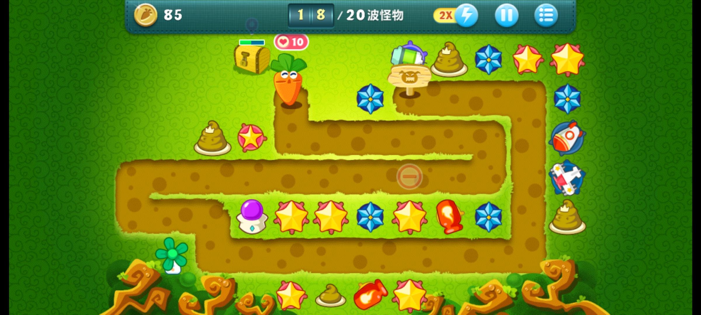 嘿保卫萝卜挑战30,亲们保卫萝卜挑战30,保卫萝卜挑战30我是阿波,在游戏中我最喜欢的就是范围性炮塔保卫萝卜挑战30了,在拐角处种上之后不仅能大范围的攻击怪物,同时还能清理附近的障碍物,赚钱外快,一举两得。