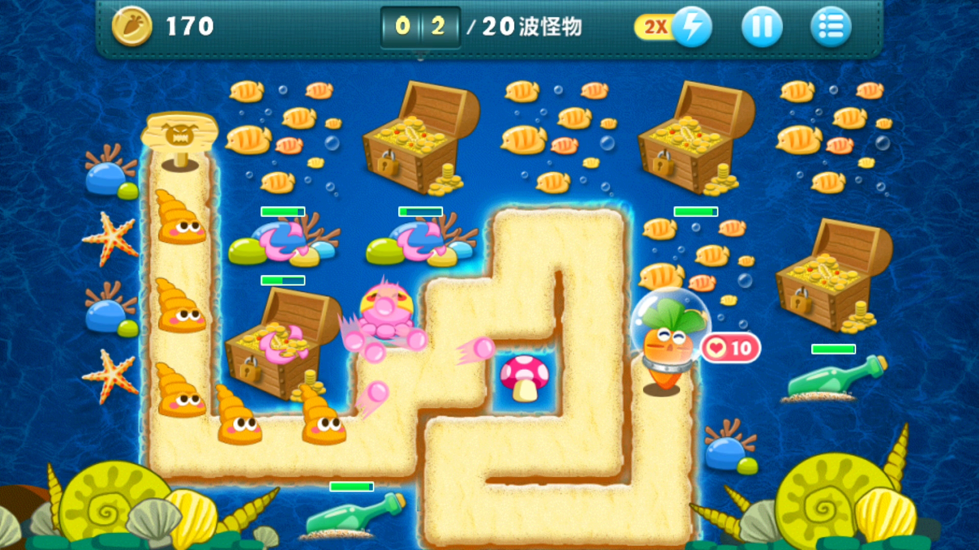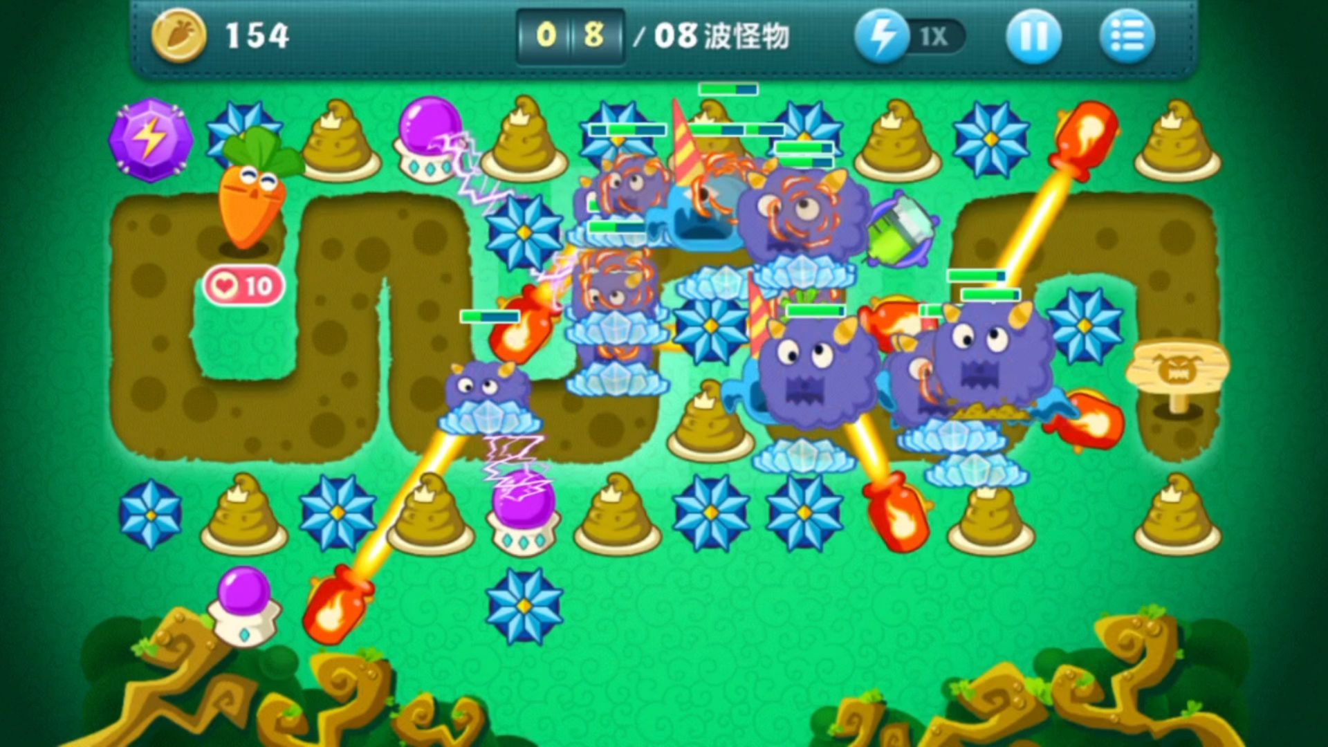 导弹会自动攻击距离自己最远的怪物,最好建在离萝卜较远的位置。