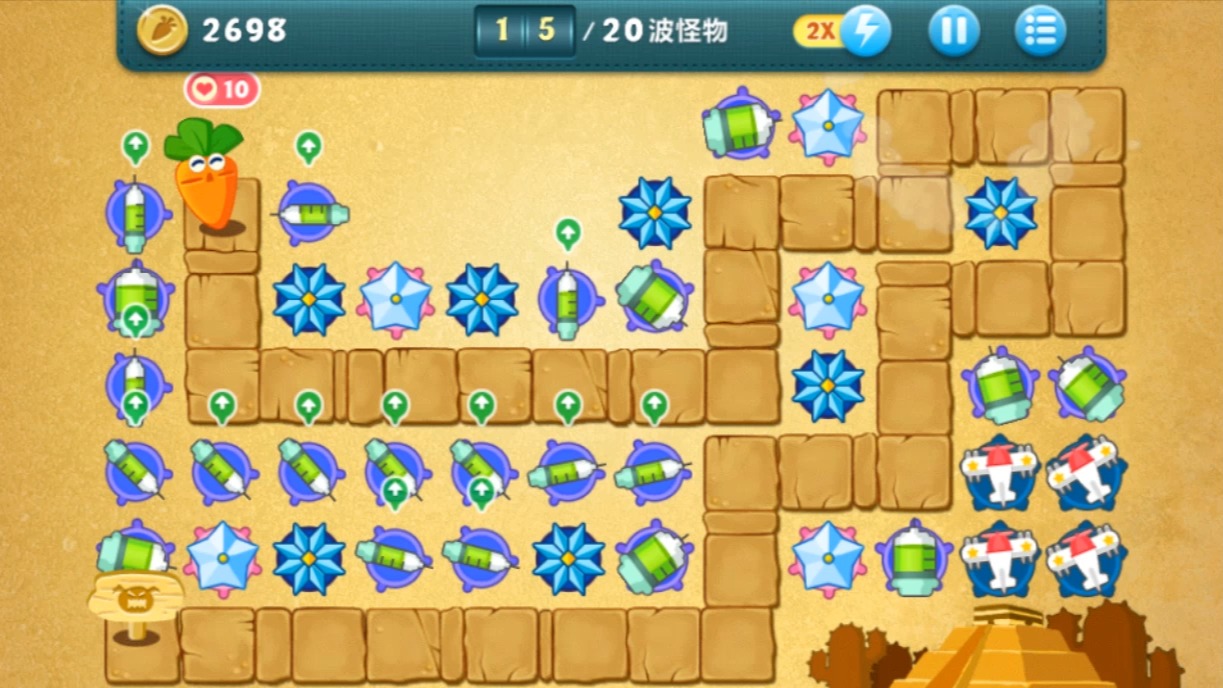 炮塔保卫萝卜天际12:瓶子炮、月亮、鱼骨、导弹、多重箭