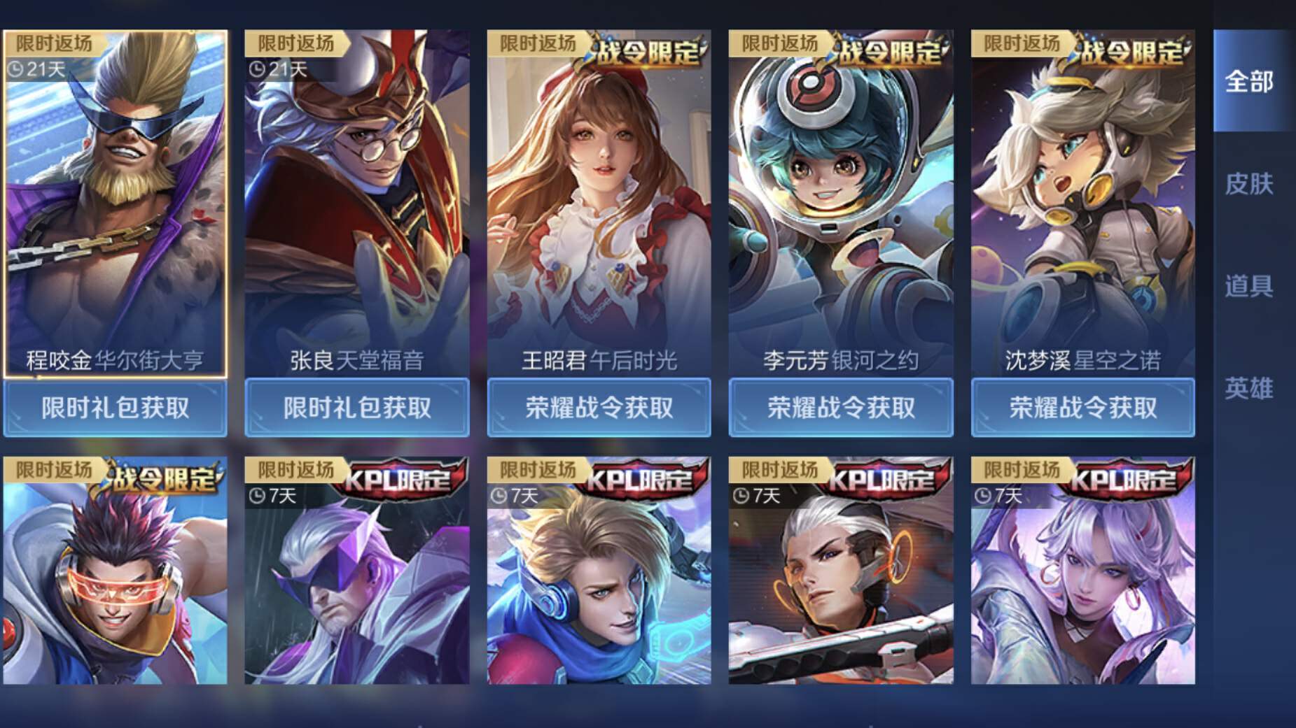 王者荣耀限定皮肤返场时间