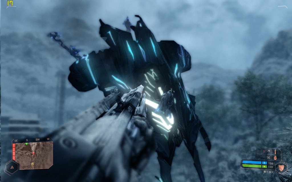 6、触发剧情,整个孤岛危机弹头中最震撼的一段出现了,一艘巨大的外星人飞船缓缓的飞了出来,伴随着遮天蔽日的小外星人,灰暗的阳光下,悲壮的音乐中,我们心中升起了一种人类世界就要灭亡的错觉,拯救世界的责任就在你身上了,那么,勇敢的少年快去创造奇迹吧!货柜就在基地里面,但是有一个巨大的BOSS,有他在,运输机不能降落。