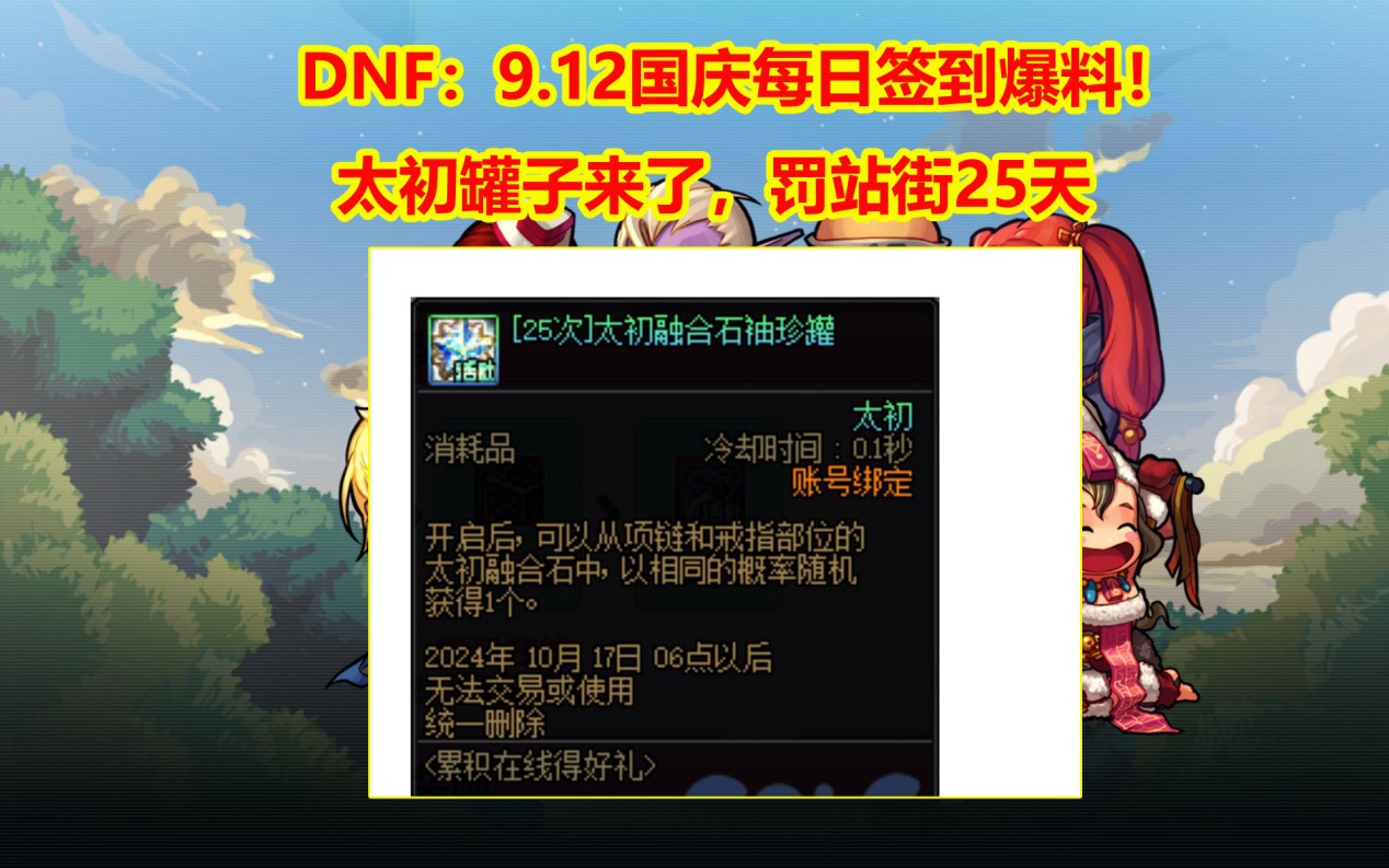3、DNF九周年签到及奖励领取方式如下一基础参与条件需在6月24日至6月25日期间登录过游戏,否则无法参与后续奖励领取二奖励领取流程 首次领取时间6月27日官网领取1600开放 DNF助手APP领取1100开放早于官网奖励分阶段发放共4次第一弹至第四弹,需按顺序依次领取三额外活动;在DNF中,可通过掌上道具城APP免费领取装备品级调整箱,每日最多可领30个具体方法如下安装并打开掌上道具城APP手机安装该应用后,进入软件主界面完成每日签到点击软件内的“每日签到”功能,签到后系统会赠送聚豆作为奖励积累聚豆每日签到获得的聚豆会存入账户,需持续积累至足够数量检查;1签到获得的部分东西不是账号绑定的,锻造材料深渊票这些都是角色绑定的2每周4签到的活动盒子是账号绑定的,本次最终开升级卷的那个是角色绑定的,切记别拿85的号开每日签到活动的签到机会会在次日凌晨600重置,每个帐号每天只能领取一次奖励,各位勇士在每日凌晨600晚上2359之间完成;第一步打开DNF手游,点击活动图标进入游戏主界面后,找到并点击右上角的活动功能入口该图标通常以醒目的活动标识或文字形式呈现,点击后将跳转至活动汇总页面第二步进入活动界面后,点击补领图标在活动汇总页面中,需找到与签到相关的功能模块部分版本可能直接显示签到按钮,若未;DNF免费领取装备品级调整箱可通过掌上道聚城APP完成,核心步骤为签到任务获取聚豆,再通过聚豆商城兑换 具体操作如下准备工具需下载安装掌上道聚城APP,并登录需领取调整箱的DNF账号切换游戏至DNF打开APP后进入商城页面,点击顶部中间的游戏名称,选择地下城与勇士每日签到领聚豆在dnf界面点击每日;DNF活力奔跑来签到活动通过每日签到和完成推荐地下城任务获取礼盒,累计签到次数可解锁更丰厚奖励具体玩法和礼盒获取方式如下进入活动界面选择游戏角色进入主界面默认位于赛丽亚房间,在疲劳值上方找到活动图标并点击,进入活动专属界面查看礼盒内容在活动界面中,可看到多种签到礼盒图标,将鼠标悬停在礼盒上可预览具体奖励内容如装。