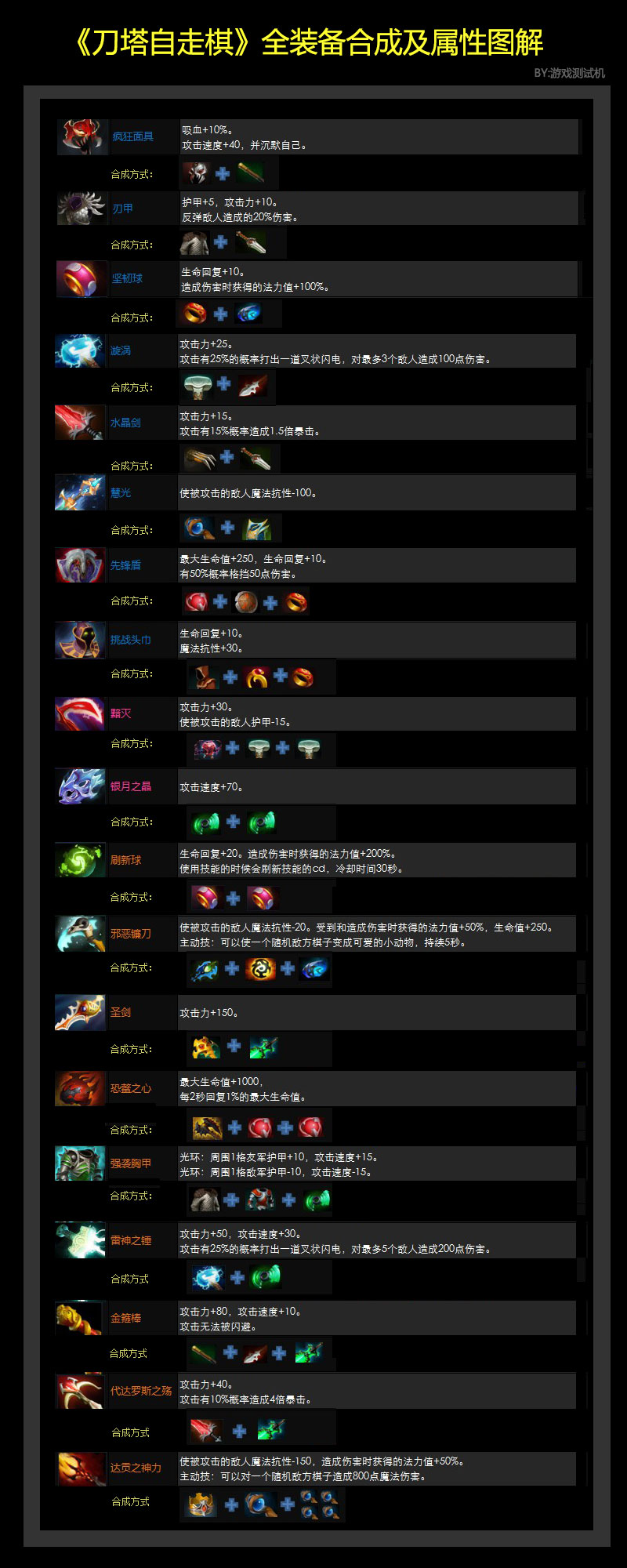 DOTA2刀塔自走棋装备合成表核心内容如下基础装备合成规则刀塔自走棋的装备合成遵循“基础材料+合成公式”模式玩家需通过战斗掉落野怪奖励或选秀环节获取基础装备如锁子甲阔剑法师长袍等,再根据特定组合合成高级装备例如,锁子甲防御 + 阔剑攻击 = 先锋盾提升生命值与减伤。