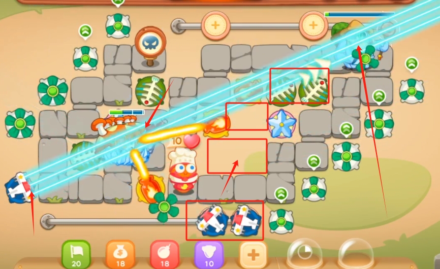 保卫萝卜挑战3攻略如下武器选择与初始布局本关可选武器较少保卫萝卜3攻略,但拥有火箭和雪花两种强力武器在怪物出口处放置火箭并升至顶级,利用其高伤害快速消灭初期怪物拓展攻击范围在右上角大箱子右侧放置第二个顶级火箭,形成交叉火力清理障碍物获取资源操控右上角火箭攻击红框内树丛,左侧火箭负责消灭。