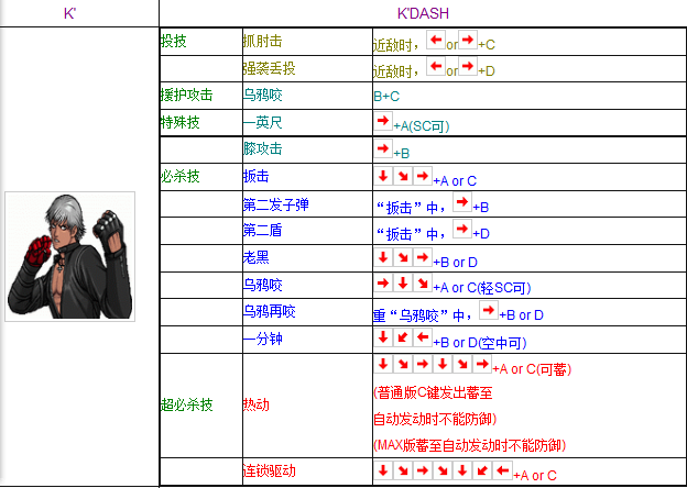 觉醒技能当满足一定条件后,K9999可触发觉醒技能,觉醒后角色能力将得到大幅度提升4 防御及闪避技巧防御按下特定的防御键,K9999可进入防御状态,抵挡敌人的攻击闪避利用闪避键进行快速位移,躲避敌人的攻击并寻找反击机会K9999的出招表是其在拳皇2002风云再起中的重要操作指南玩家需。