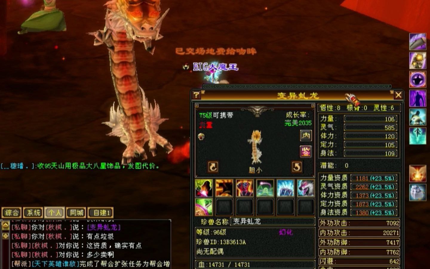 在天龙八部游戏中,宝宝的资质计算遵循特定的公式原始资质=现在资质÷1+悟性加成例如,假设一个宝宝的当前资质为3000,悟性等级为8,即加成235%,那么其原始资质将通过计算得出为2429悟性加成的具体数值如下1级悟性加成1 2级悟性加成15 3级悟性加成21 4级悟性加成3 5级悟性;天龙八部宝宝体积变大的原因主要与悟性提升幻化资质等级以及灵性相关,具体机制如下1 悟性提升是体型变化的核心因素悟性是影响宝宝体型的关键属性,其提升会直接导致体型增大根据游戏设定,悟性分为多个等级区间13级46级78级910级,每突破一个区间体型会显著变化例如,悟性从1提。